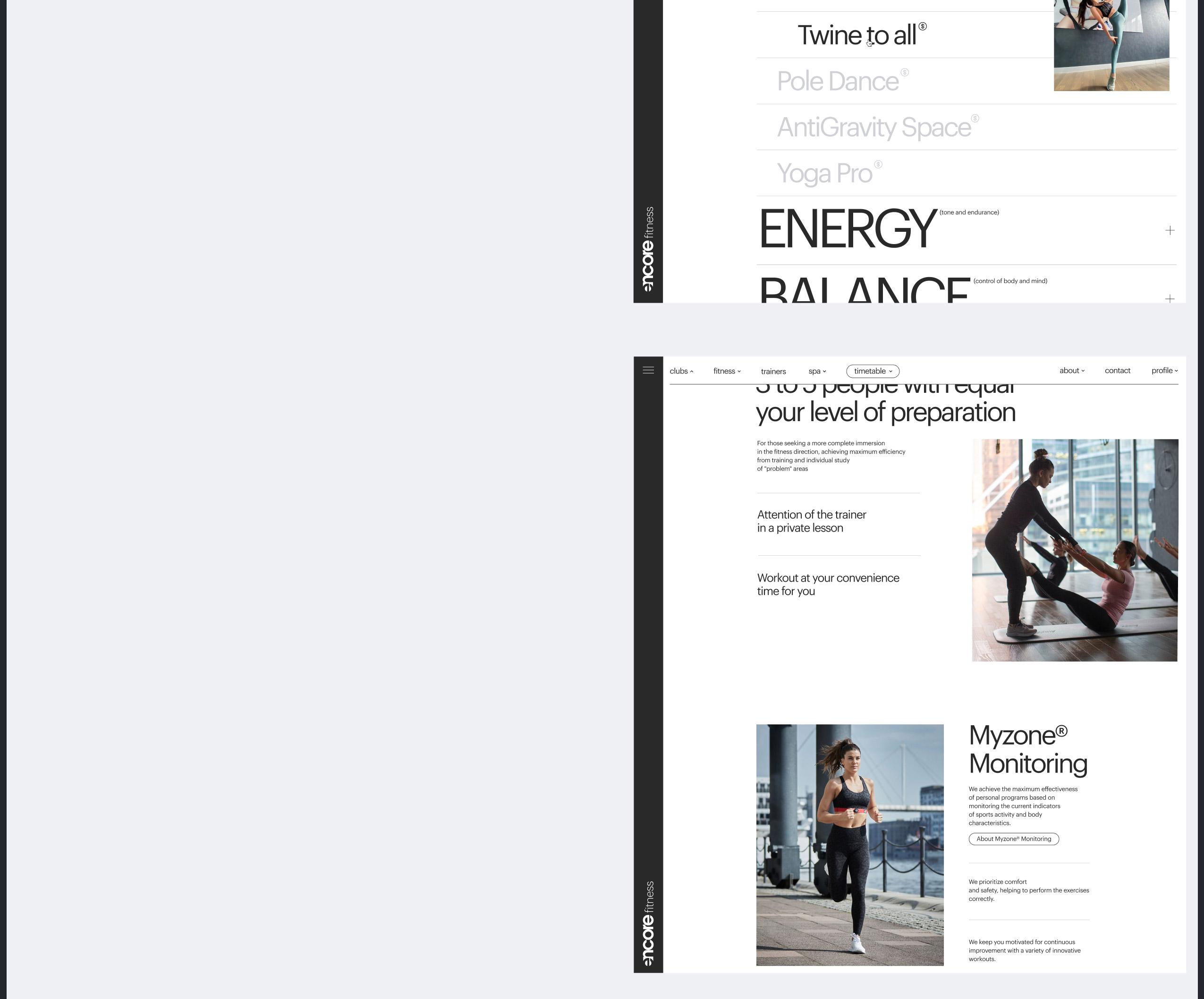 The essence of the redesign is a complete rethinking of the club’s positioning. Now it’s not just fitness, but a way of life. Therefore, digital communication and services should be conveyed in a modern language, showing the otherness, sophisticated and technological design, as well as convenient digital services inside the club.